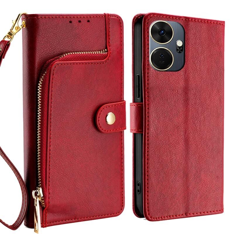 Για Itel P55+ 4G φερμουάρ τσάντα δερμάτινη θήκη τηλεφώνου (κόκκινο)