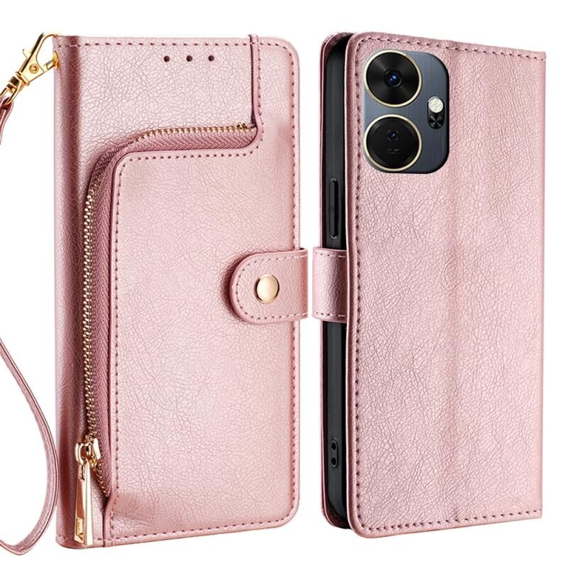 Για Itel P55+ 4G φερμουάρ τσάντα δερμάτινη θήκη τηλεφώνου (Rose Gold)