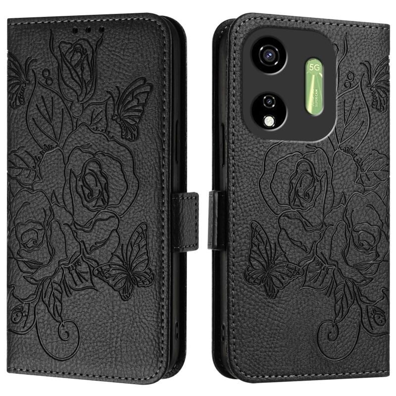 For itel P55 5G Embossed Rose RFID Anti-theft Leather Phone Case(Black)