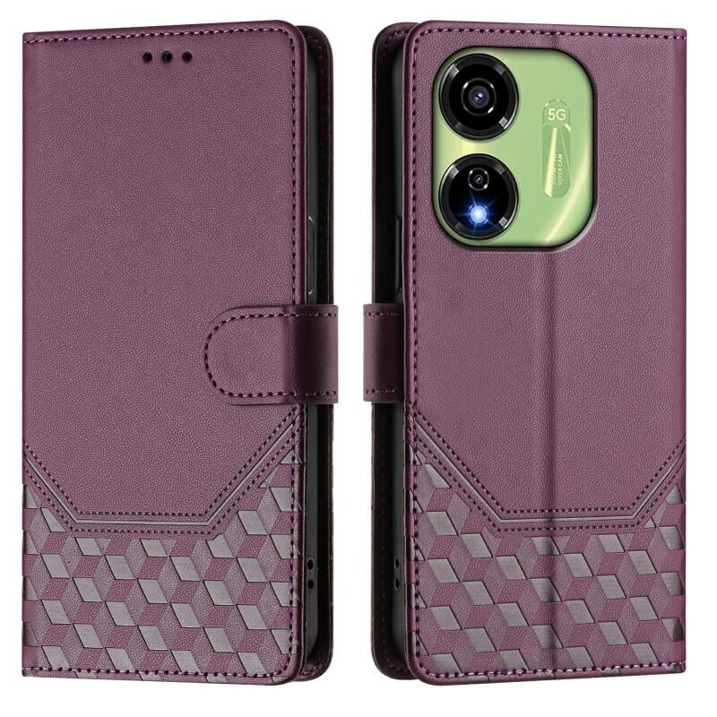 Για itel P55 5G κηρήθρα ανάγλυφο RFID δερμάτινη θήκη τηλεφώνου (Violet)