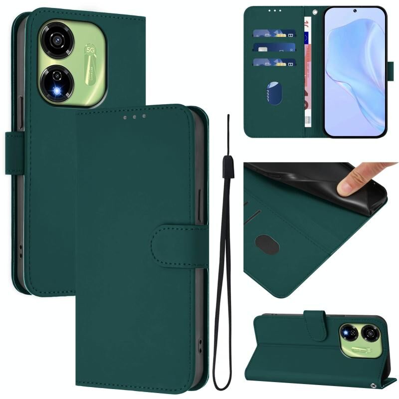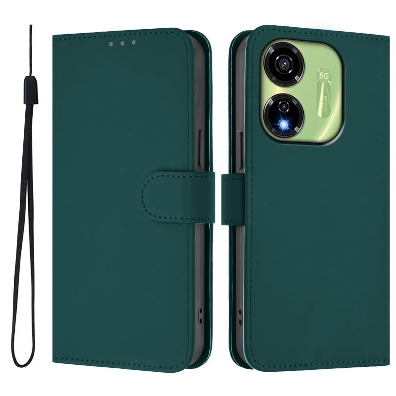 Για το itel P55 5G Skin Feel Solid Color δερμάτινη θήκη τηλεφώνου με κορδόνι (σκούρο πράσινο)