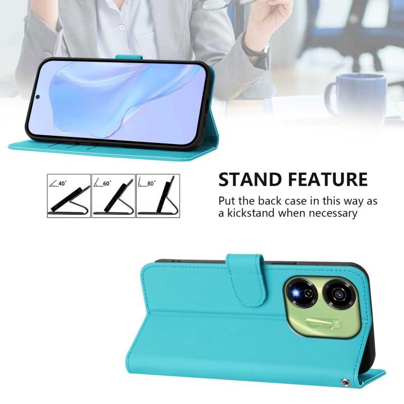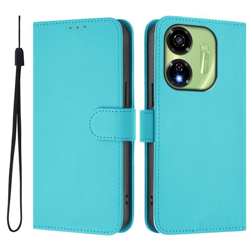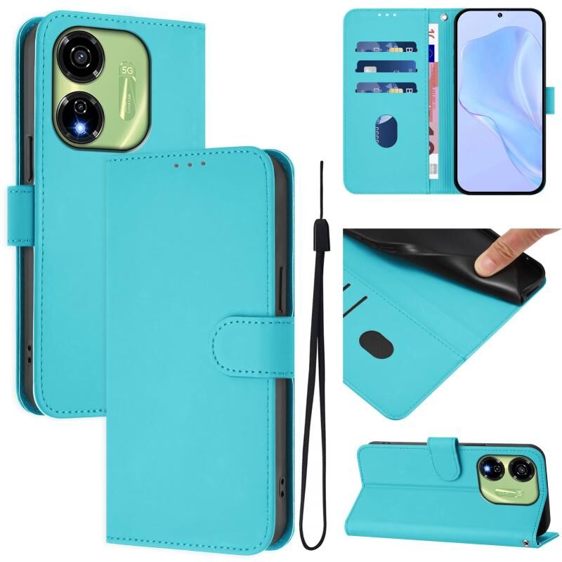 Για το itel P55 5G Skin Feel Solid Color δερμάτινη θήκη τηλεφώνου με κορδόνι (Lake Blue)