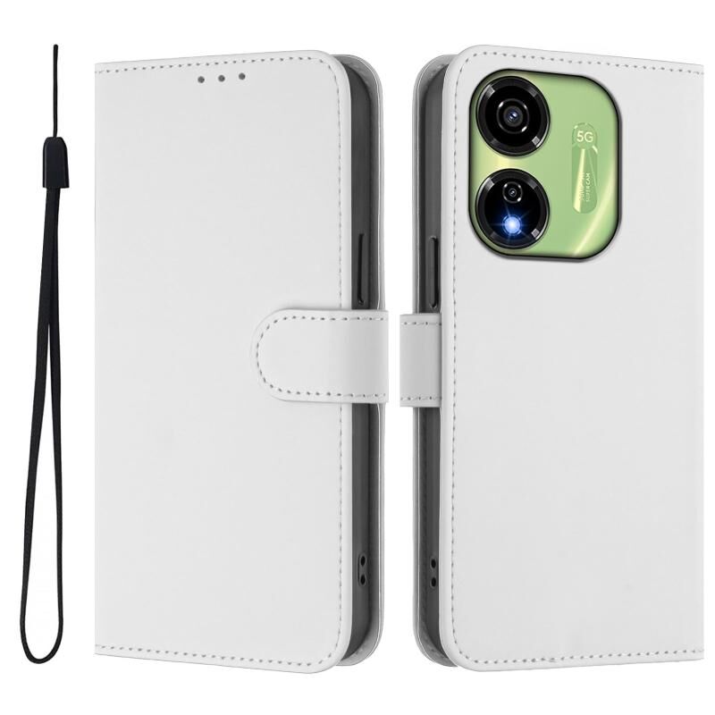Για το itel P55 5G Skin Feel Solid Color δερμάτινη θήκη τηλεφώνου με κορδόνι (λευκό)