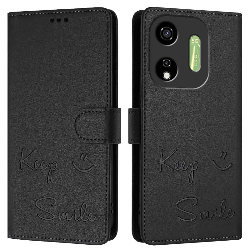 For itel P55 5G Smile Embossing RFID Leather Phone Case(Black)