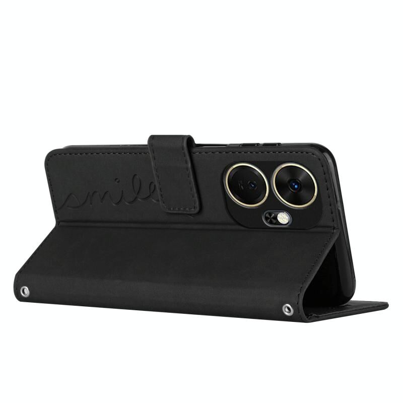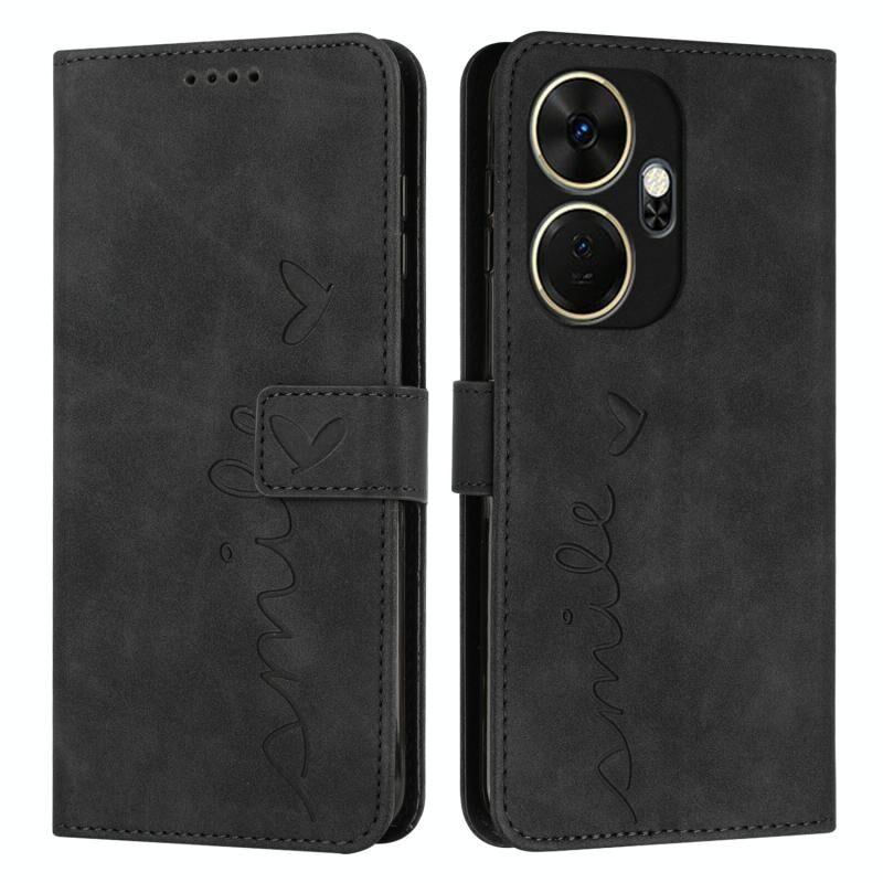 Για το itel P55+ Skin Feel Heart ανάγλυφη δερμάτινη θήκη τηλεφώνου με μακρύ κορδόνι (μαύρο)