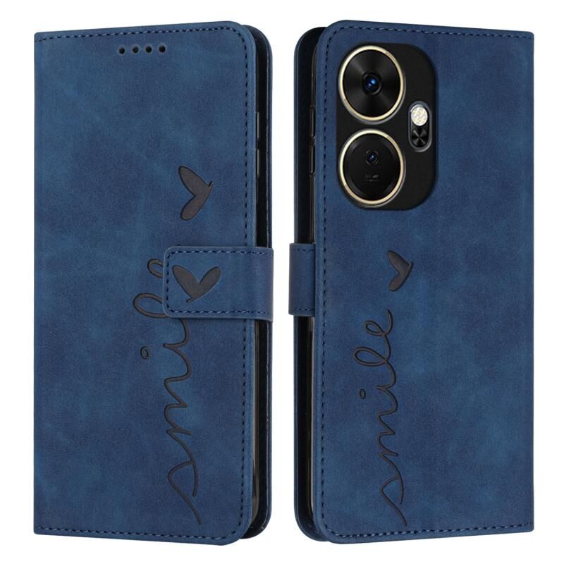 Για το itel P55+ Skin Feel Heart ανάγλυφη δερμάτινη θήκη τηλεφώνου με μακρύ κορδόνι (μπλε)