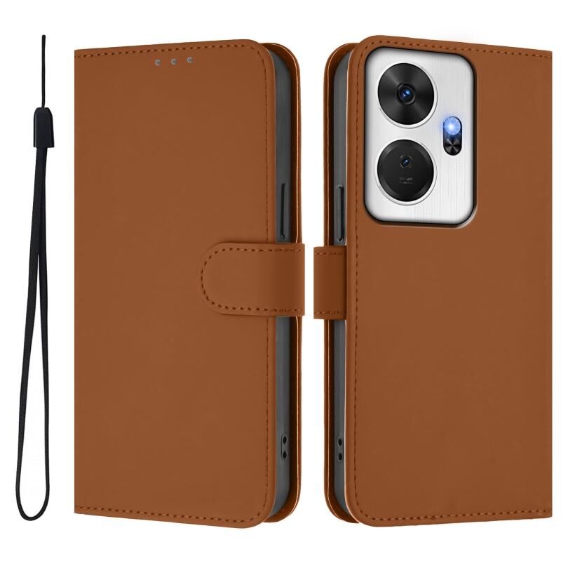 Για το itel P55+ Skin Feel Solid Color δερμάτινη θήκη τηλεφώνου με κορδόνι (καφέ)
