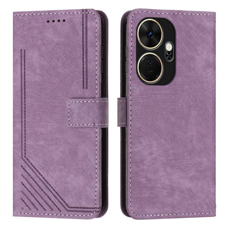 Για το itel P55+ Skin Feel Stripe Pattern δερμάτινη θήκη τηλεφώνου με κορδόνι (μωβ)