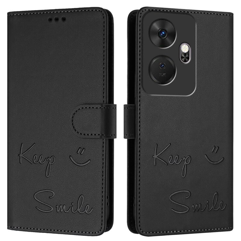 For itel P55+ Smile Embossing RFID Leather Phone Case(Black)