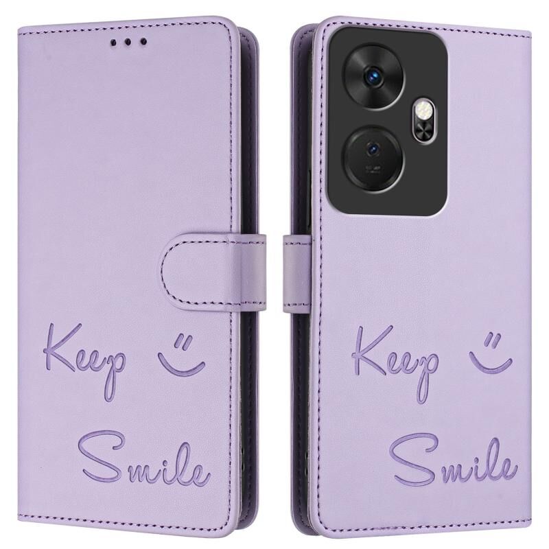 For itel P55+ Smile Embossing RFID Leather Phone Case(Light Purple)
