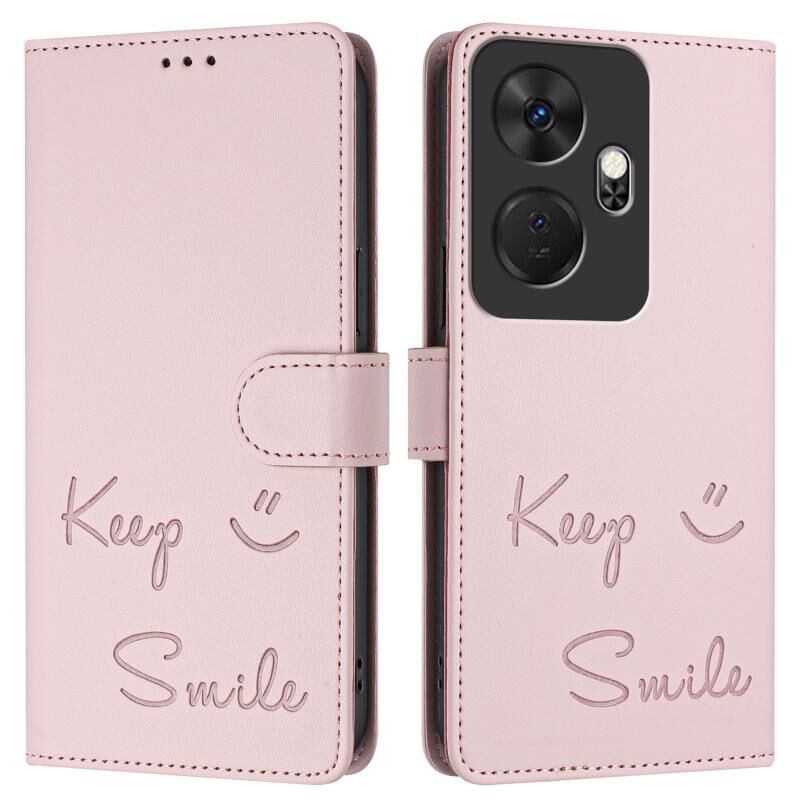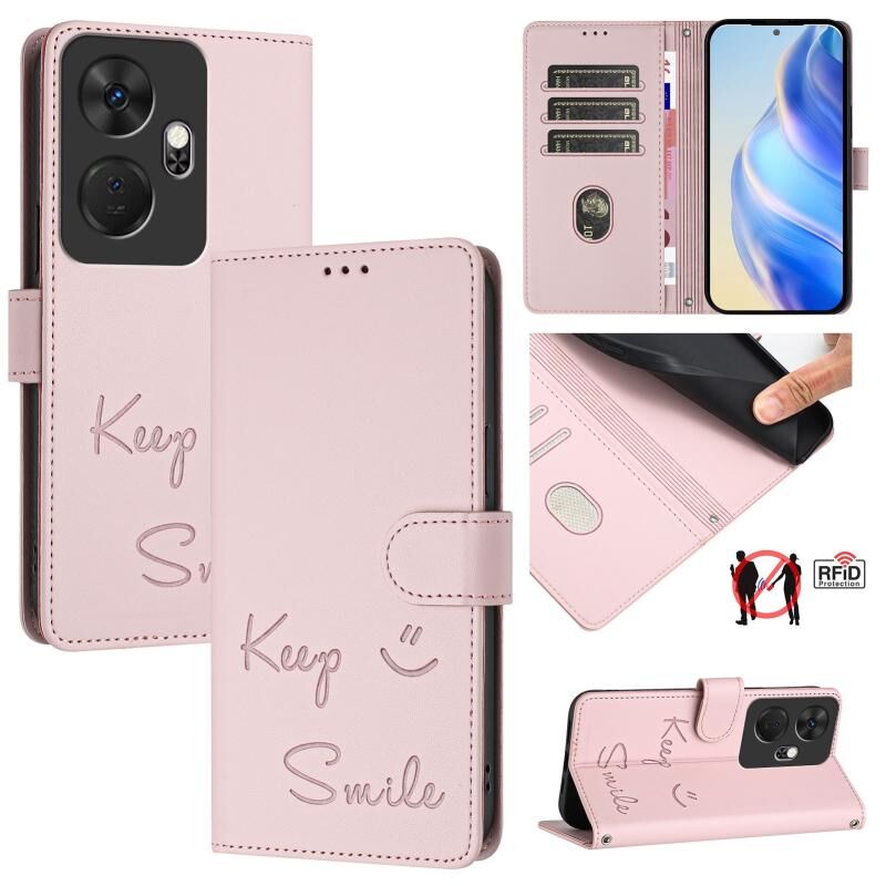 For itel P55+ Smile Embossing RFID Leather Phone Case(Pink)