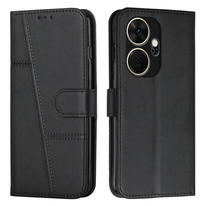 Για το itel P55 + ραφή μοσχάρι υφή πόρπη δερμάτινη θήκη τηλεφώνου (μαύρο)