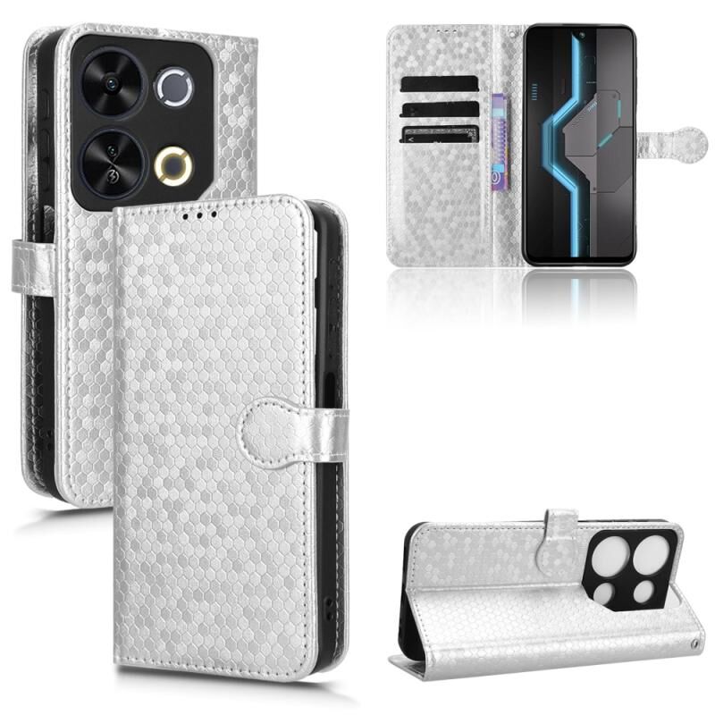 Για το itel P65 4G Honeycomb Dot Texture Δερμάτινη θήκη τηλεφώνου (ασημί)