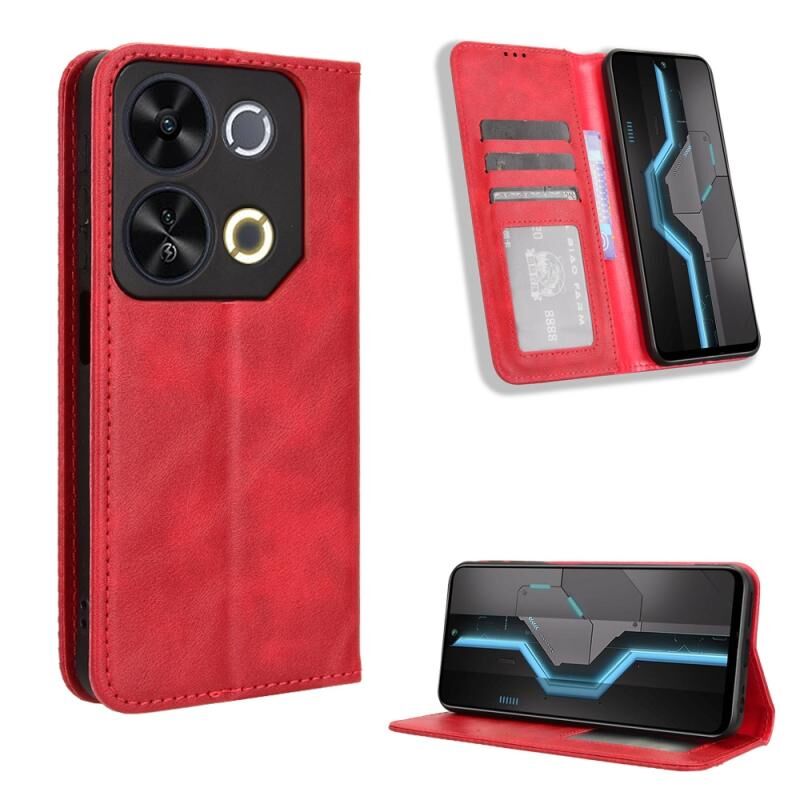 Για itel P65 4G μαγνητική πόρπη ρετρό υφή δερμάτινη θήκη τηλεφώνου (κόκκινο)