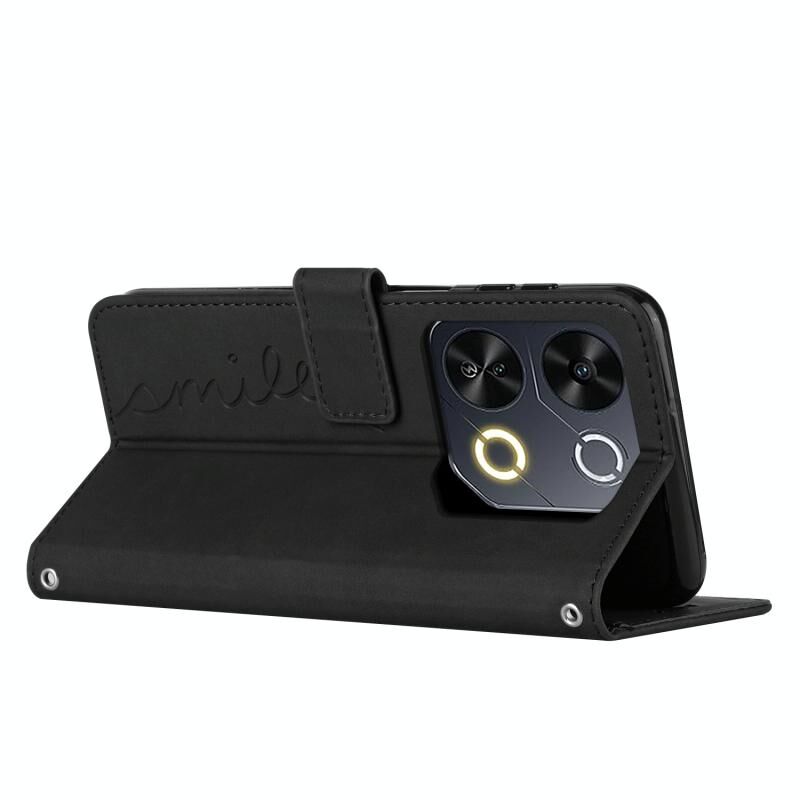 Για το itel P65 Skin Feel Heart ανάγλυφη δερμάτινη θήκη τηλεφώνου με μακρύ κορδόνι (Μαύρο)