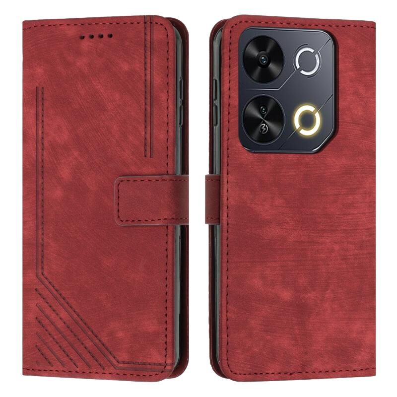 Για το itel P65 Skin Feel Stripe Pattern δερμάτινη θήκη τηλεφώνου με κορδόνι (κόκκινο)
