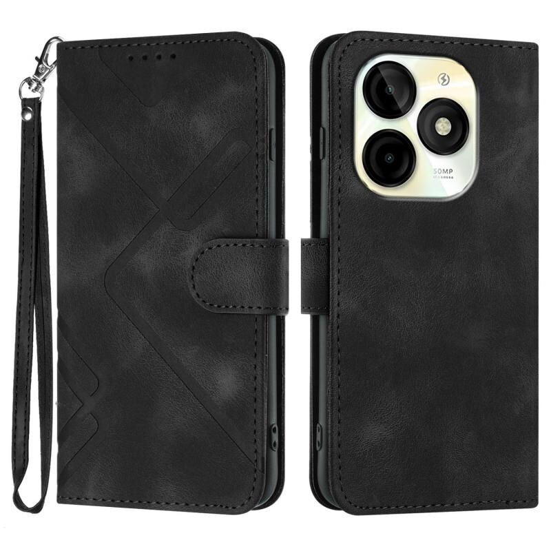 For Itel P65C Line Pattern Skin Feel Leather Phone Case(Black)