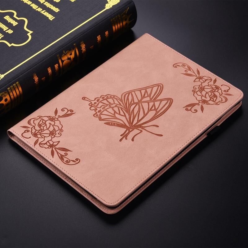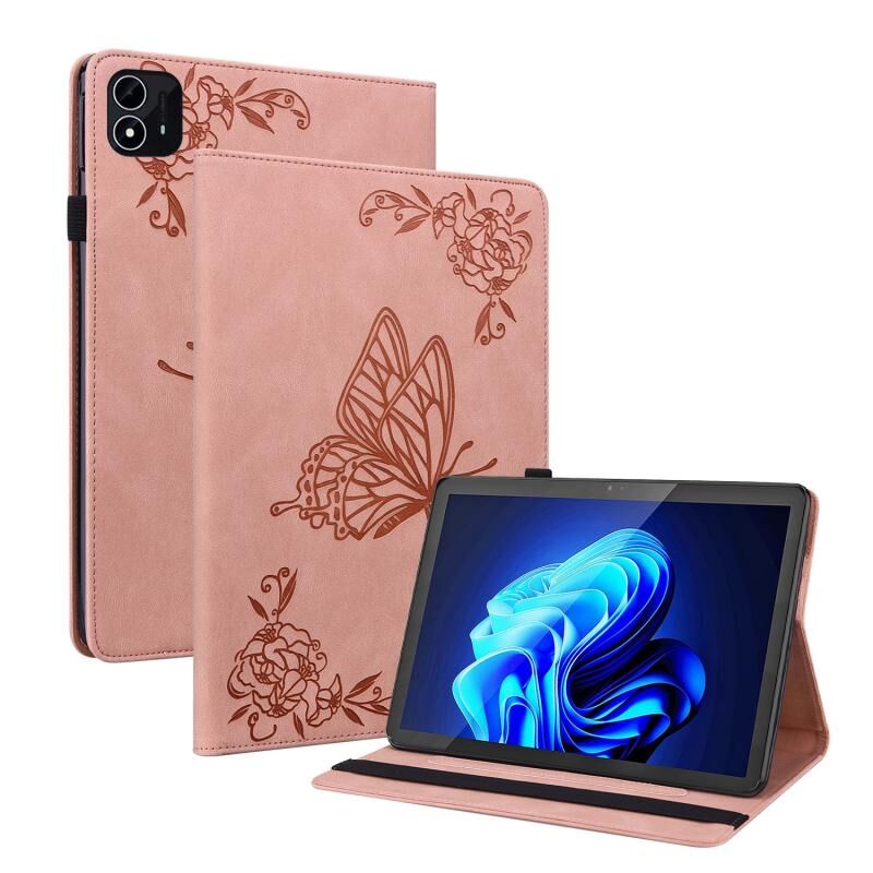 For itel Pad One 10.1 Butterfly Flower Embossed Leather Tablet Case(Rose Gold)