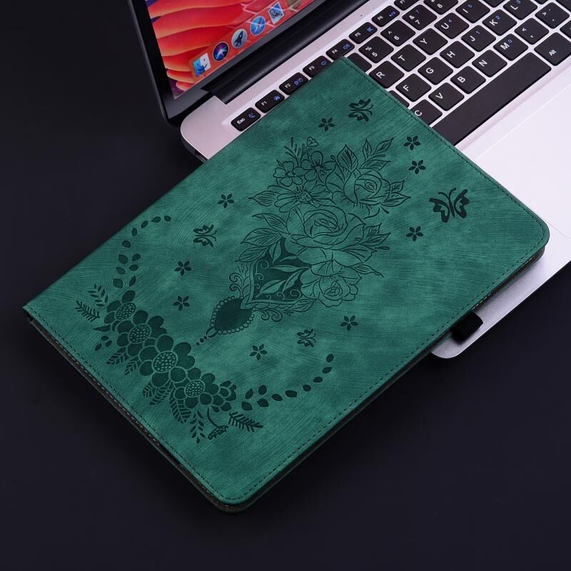 For itel Pad One 10.1 Butterfly Rose Embossed Leather Tablet Case(Green)