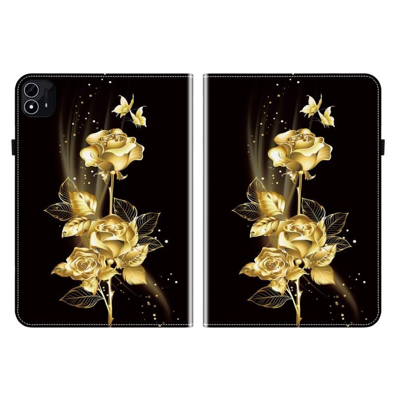 For itel Pad One 10.1 Crystal Texture Painted Leather Smart Tablet Case(Gold Butterfly Rose)