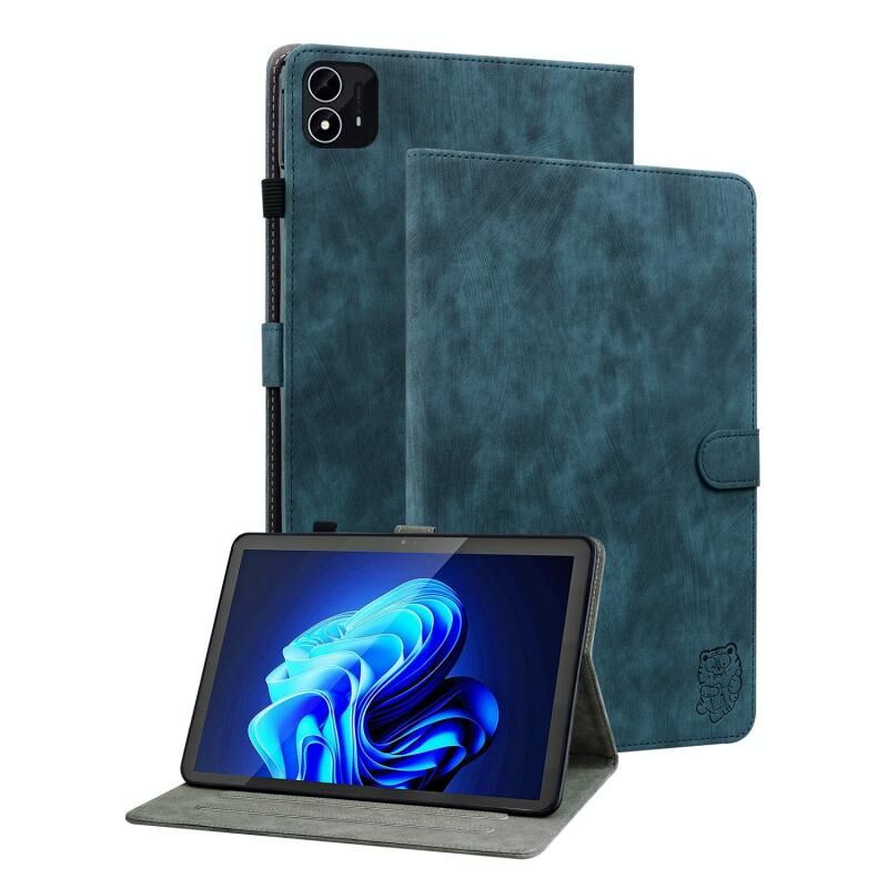 For itel Pad One 10.1 Tiger Pattern Flip Leather Tablet Case(Dark Blue)