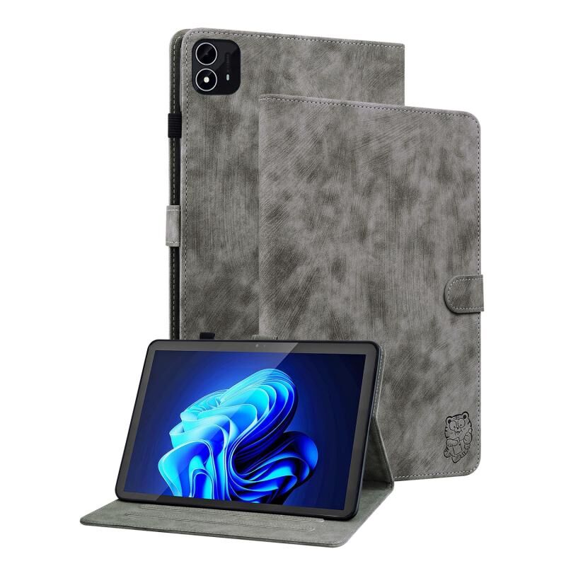 For itel Pad One 10.1 Tiger Pattern Flip Leather Tablet Case(Grey)