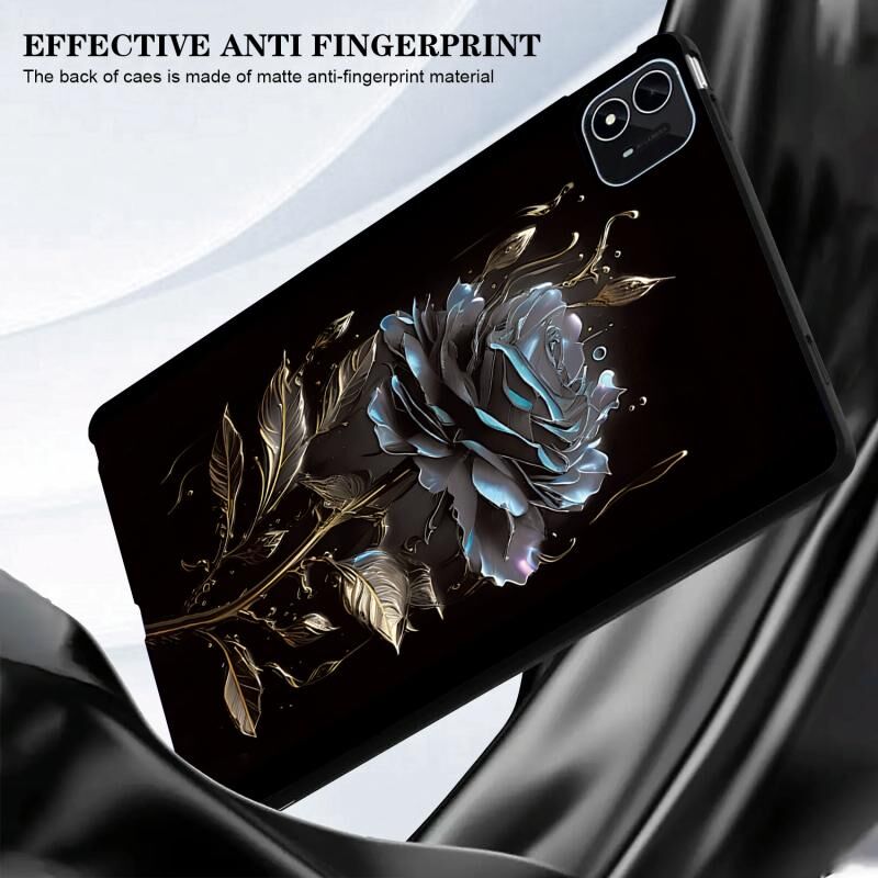 For itel Pad One Color Painting Pattern Smart Tablet TPU Case(Black Rose)