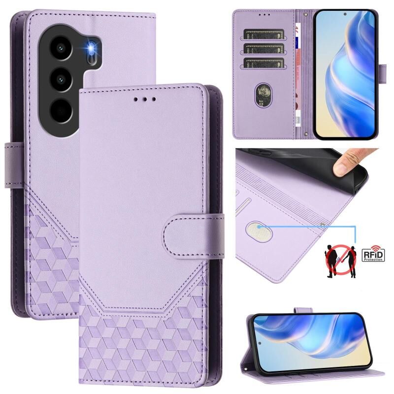 Θήκη τηλεφώνου δερμάτινη με ανάγλυφο κηρήθρας RFID για itel Power 70 (Μέντα Πράσινο)