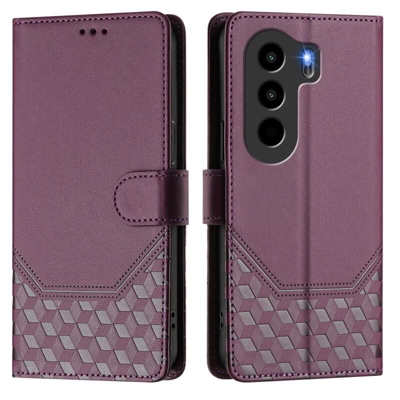 Θήκη τηλεφώνου δερμάτινη με ανάγλυφο κηρήθρας RFID για itel Power 70 (Βιολετί)