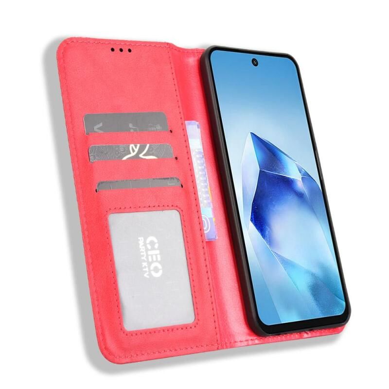 For itel Power 70 Magnetic Buckle Retro Texture Leather Phone Case(Red)