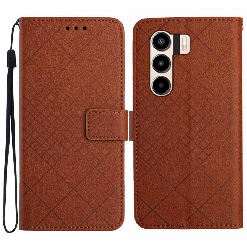 For itel Power 70 Rhombic Grid Texture Leather Phone Case(Brown)