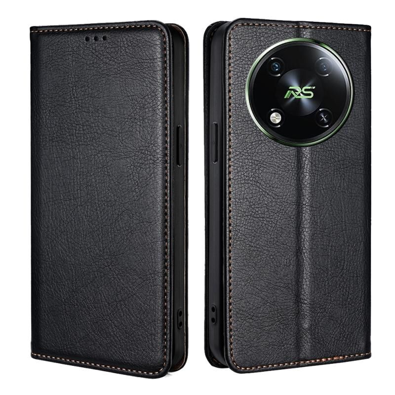 Για το Itel RS4 4G Gloss Oil Solid Color Μαγνητική δερμάτινη θήκη τηλεφώνου (μαύρο)