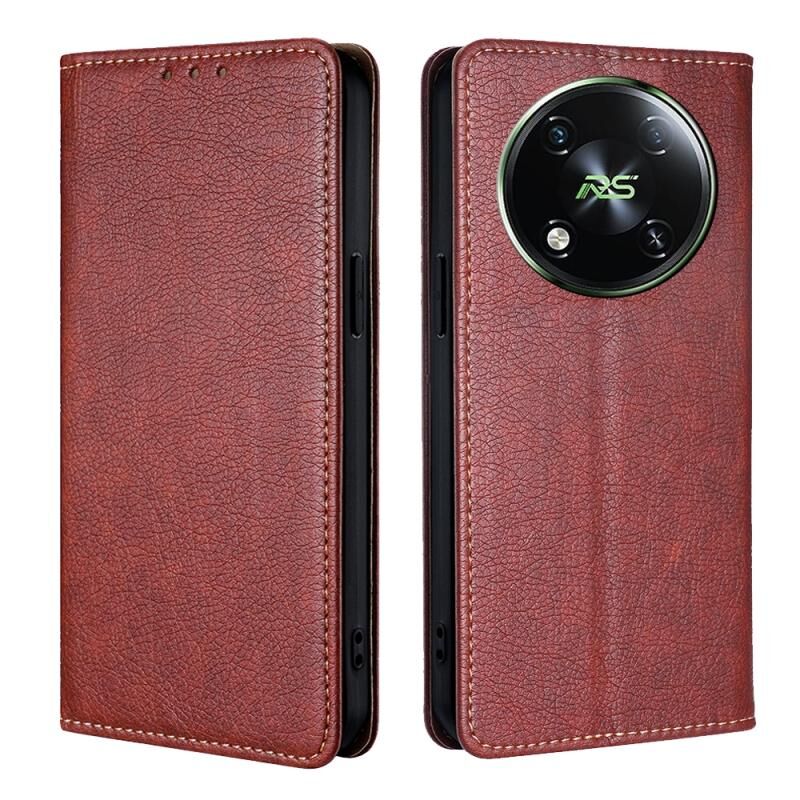 Για το Itel RS4 4G Gloss Oil Solid Color Μαγνητική δερμάτινη θήκη τηλεφώνου (καφέ)