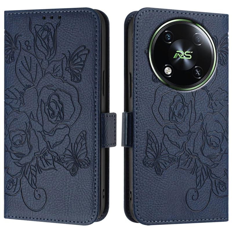 For itel RS4 Embossed Rose RFID Anti-theft Leather Phone Case(Dark Blue)