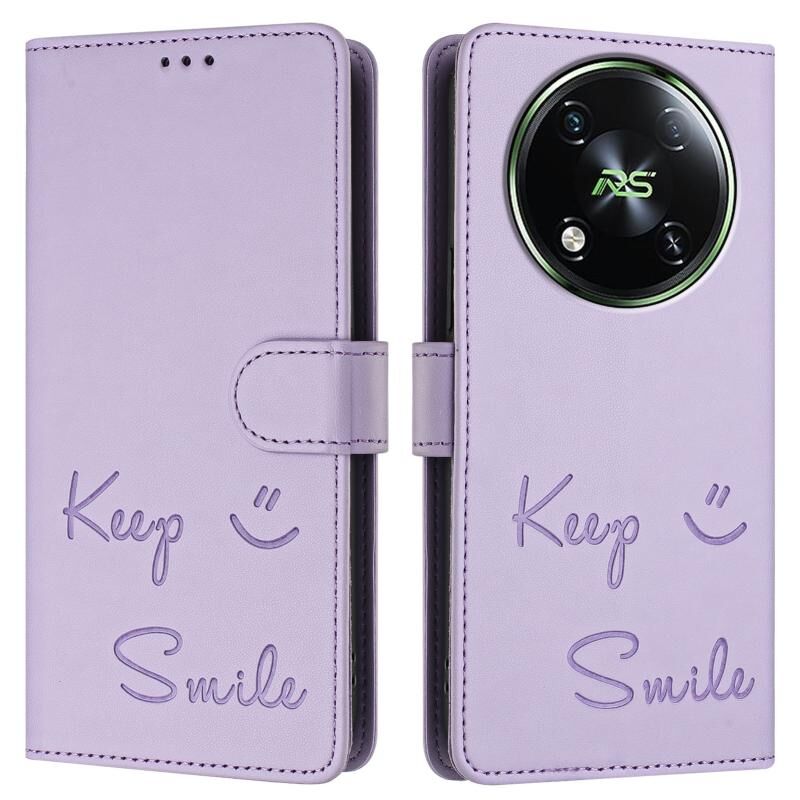 For itel RS4 S666LN Smile Embossing RFID Leather Phone Case(Light Purple)