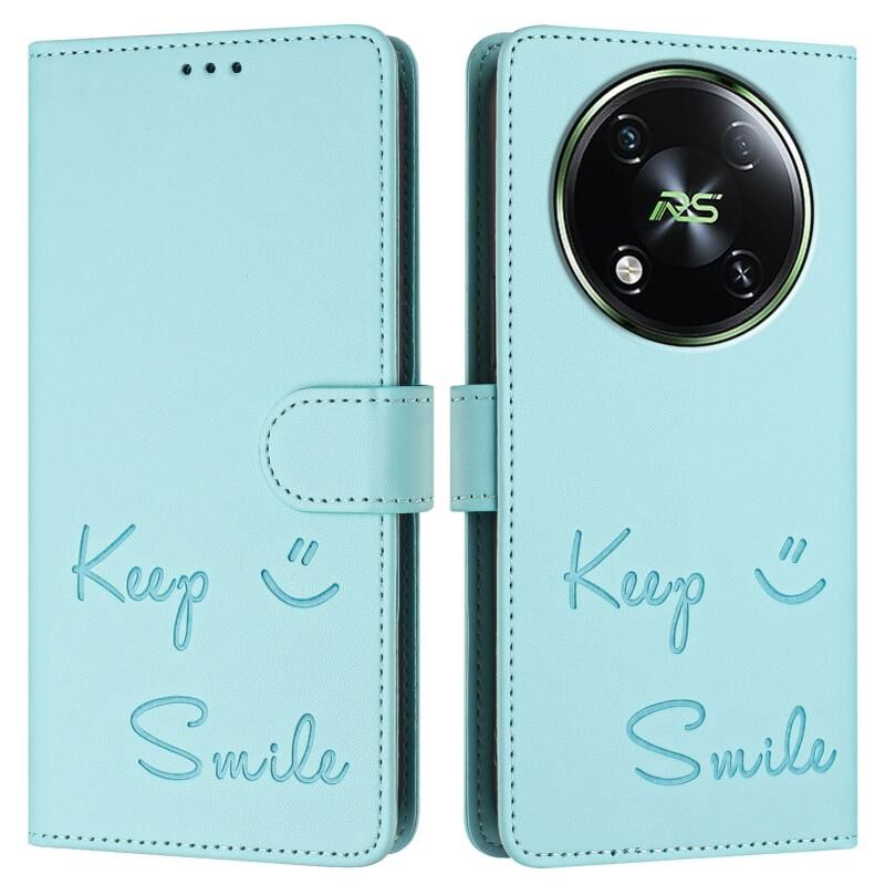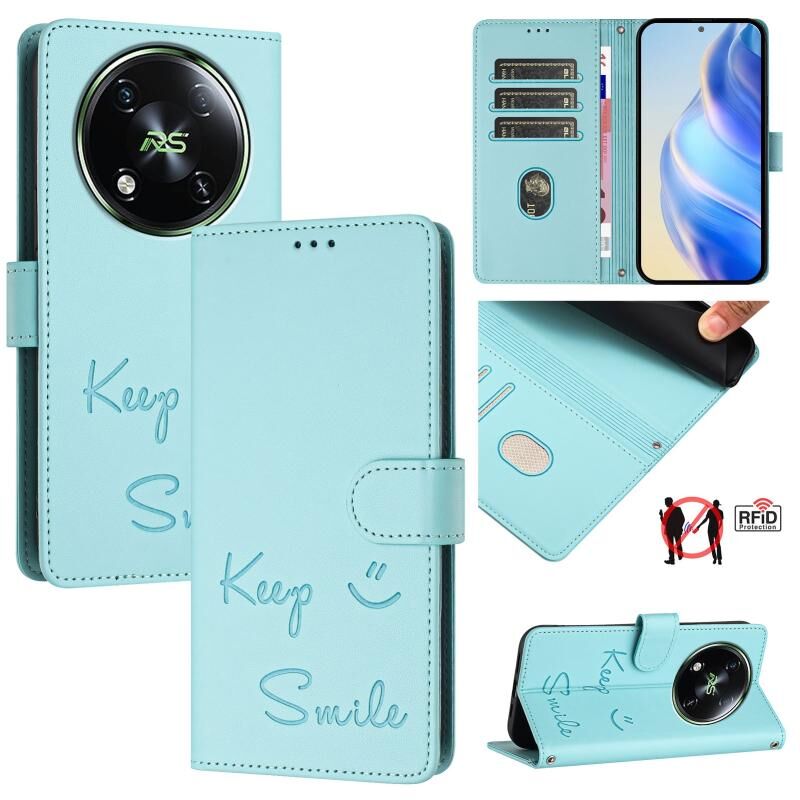 For itel RS4 S666LN Smile Embossing RFID Leather Phone Case(Mint Green)