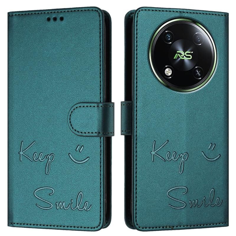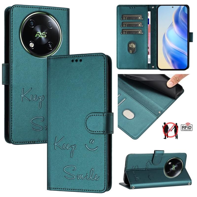 For itel RS4 S666LN Smile Embossing RFID Leather Phone Case(Peacock Green)