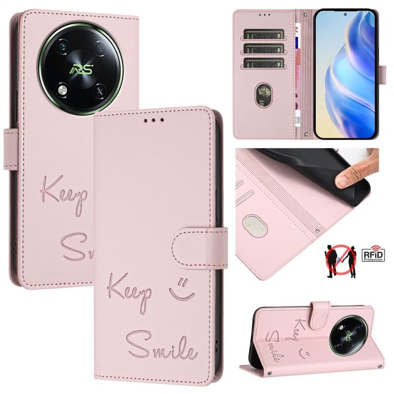 For itel RS4 S666LN Smile Embossing RFID Leather Phone Case(Pink)