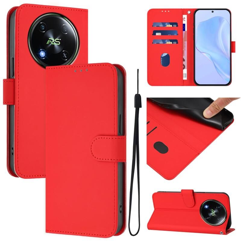 Για το itel RS4 Skin Feel Solid Color δερμάτινη θήκη τηλεφώνου με κορδόνι (κόκκινο)