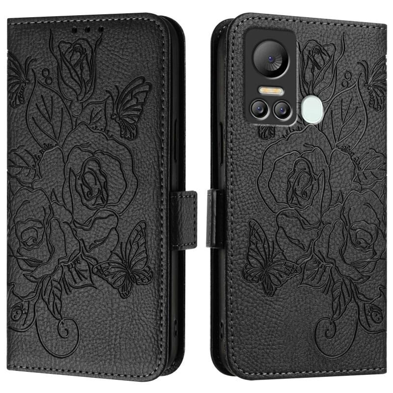 For itel S18 Embossed Rose RFID Anti-theft Leather Phone Case(Black)