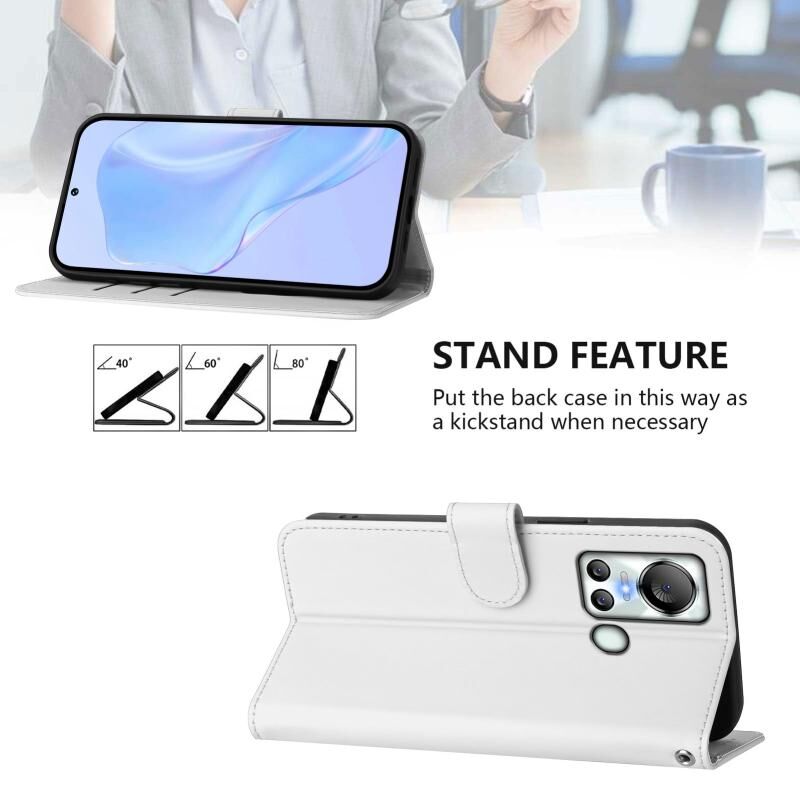 Για το itel S18 / Vision 5 Skin Feel στερεό χρώμα δερμάτινη θήκη τηλεφώνου με κορδόνι (λευκό)