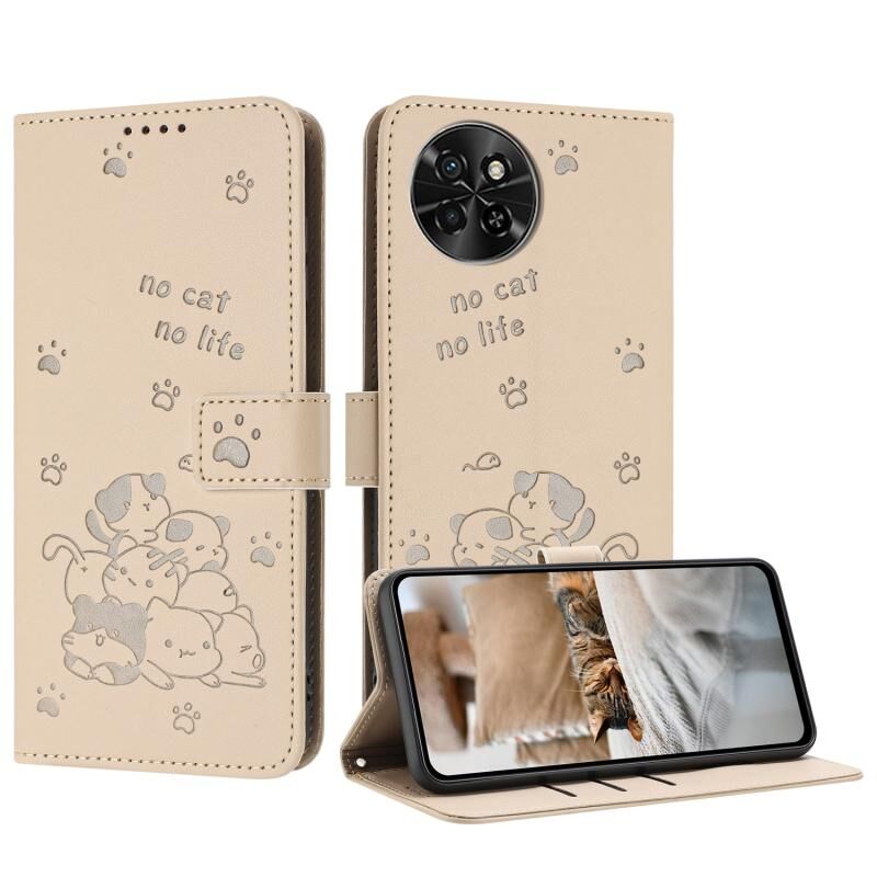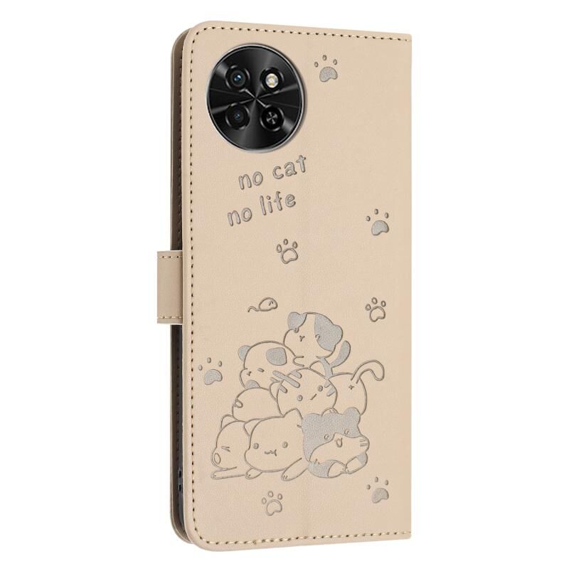 Θήκη δερμάτινη για itel S23 με ανάγλυφο γατάκι και κορδόνι (Μπεζ)
