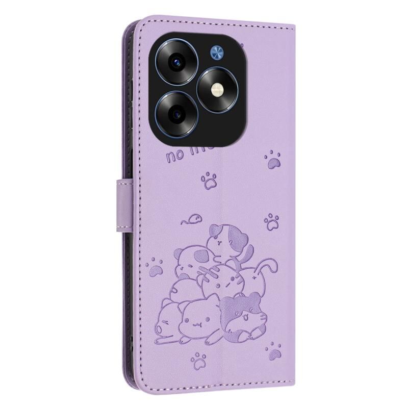 Θήκη δερμάτινη για itel S23+ με ανάγλυφο γατάκι και κορδόνι (Μωβ)