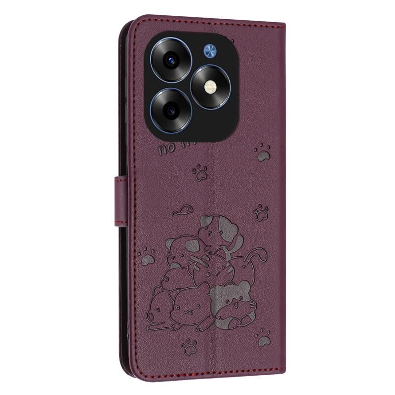 Θήκη δερμάτινη για itel S23+ με ανάγλυφο γατάκι και κορδόνι (Μωβ)