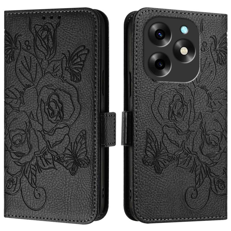 For itel S23+ Embossed Rose RFID Anti-theft Leather Phone Case(Black)
