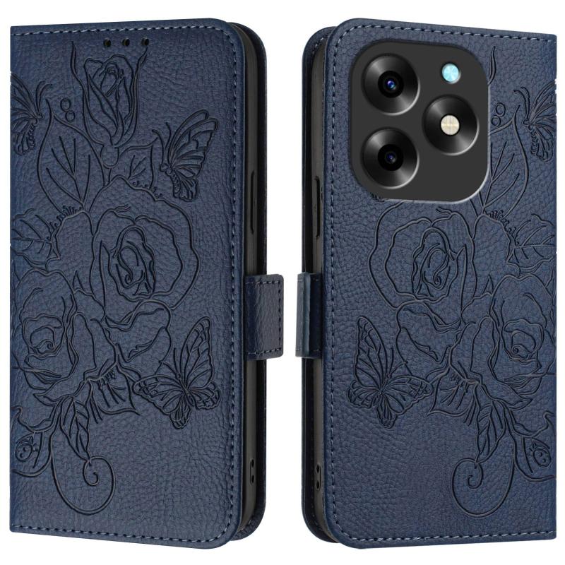 For itel S23+ Embossed Rose RFID Anti-theft Leather Phone Case(Dark Blue)