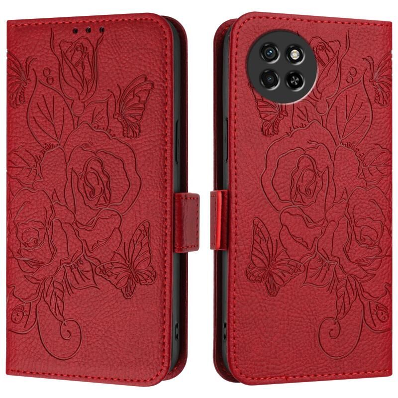 For itel S23 Embossed Rose RFID Anti-theft Leather Phone Case(Red)