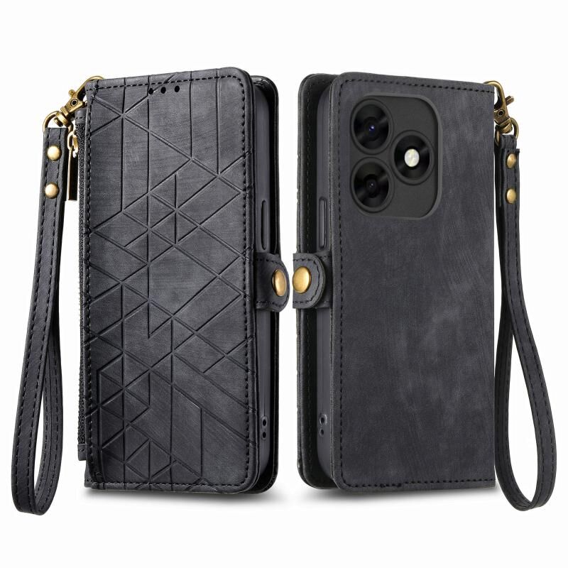 Θήκη τηλεφώνου Itel S23+ με γεωμετρικό φερμουάρ, πλευρική αγκράφα και δερμάτινη κατασκευή (Πράσινο)