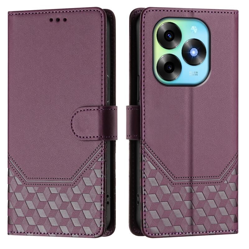 Για itel S23 + Honeycomb ανάγλυφο RFID δερμάτινη θήκη τηλεφώνου (Violet)