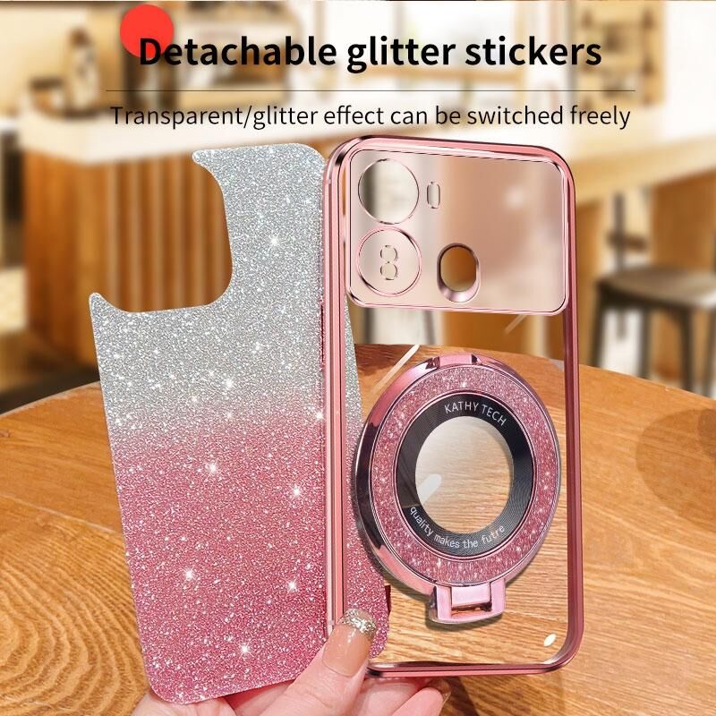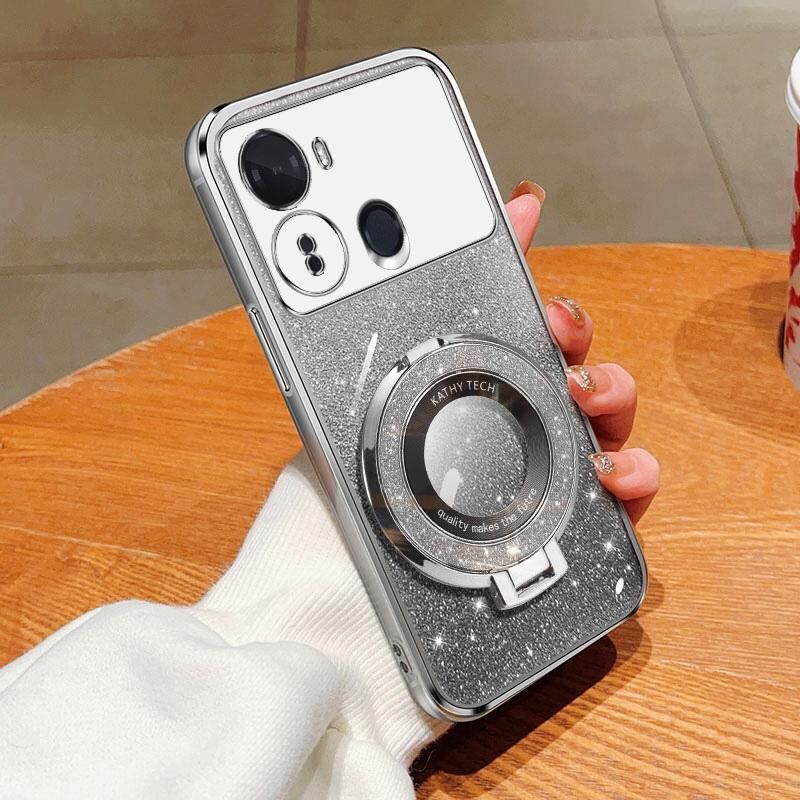 Για το Itel S23 Επιμεταλλωμένο διαβάθμιση Glitter στρογγυλό κάτοχος TPU τηλέφωνο υπόθεση (ασημί)